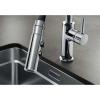 Moderne Hochdruck-Armaturen haben zwei Wasseranschlüsse für heißes und kaltes Wasser.