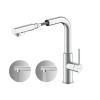 Einhebelmischer. Mit schwenk-/herausziehbarer Schlauchbrause (Strahl/Brause umstellbar), seitlichem Hebel, Laminarstrahlregler und Keramikkartusche.