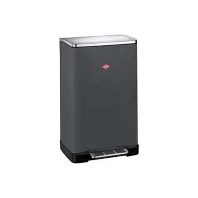 Der Treteimer hat zwei getrennte 18 l Einsätze, die Sie ganz nach Belieben mit Wertstoffen, Papier, Plastik oder Bio-Müll füllen können. Der Edelstahldeckel schließt dank eines eingebauten Dämpfers nahezu geräuschlos und verschließt den Abfall sicher. Außerdem kann der Deckel in der offenen Stellung arretiert werden. Eine praktische Befestigungsmöglichkeit für Mülltüten an den Kunststoffeinsätzen verhindert ein Herausrutschen des Beutels, sodass nichts daneben gehen kann. Der großzügige Fußtritt aus Edelstahl garantiert problemlose Bedienung und freie Hände, um Müll bequem zu entsorgen. Der Big Double Boy ist ein tolles Mülltrennsystem in stylischer Optik.