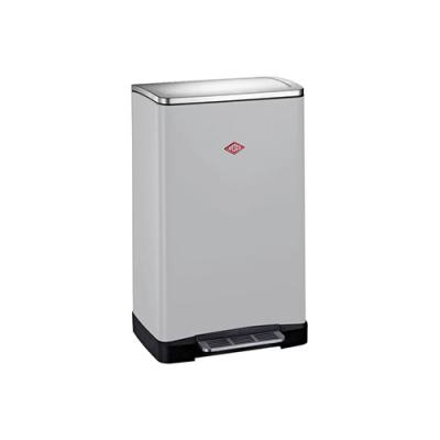 Der Treteimer hat zwei getrennte 18 l Einsätze, die Sie ganz nach Belieben mit Wertstoffen, Papier, Plastik oder Bio-Müll füllen können. Der Edelstahldeckel schließt dank eines eingebauten Dämpfers nahezu geräuschlos und verschließt den Abfall sicher. Außerdem kann der Deckel in der offenen Stellung arretiert werden. Eine praktische Befestigungsmöglichkeit für Mülltüten an den Kunststoffeinsätzen verhindert ein Herausrutschen des Beutels, sodass nichts daneben gehen kann. Der großzügige Fußtritt aus Edelstahl garantiert problemlose Bedienung und freie Hände, um Müll bequem zu entsorgen. Der Big Double Boy ist ein tolles Mülltrennsystem in stylischer Optik.