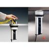 Energiebox. Versenkbar. Mit 3 Steckdosen für Hängeschränke oder Arbeitsplatten. Geführtes Herausziehen durch eine leicht zu drückende Taste, die auch beim Wiederverschließen die Leitung geordnet führt.