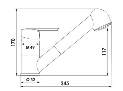 Einhebelmischer. Mit schwenk-/herausziehbarer Brause und Keramikkartusche.
