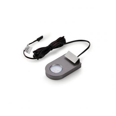 Einzelleuchte, Glasbodenleuchte. Edelstahlfarbig. Zum Aufstecken auf Glasböden mit Metallfederklammer, LED Lichtabstrahlung 6 LED nach oben und 6 LED nach unten.