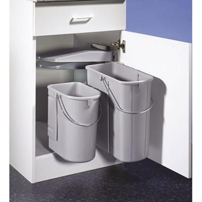 Der Schwenk-Abfallsammler Öko 1 überzeugt durch sein großes Abfallvolumen von 29 Litern. Dabei lässt er sich platzsparend auch in schmale Küchenschränke von 50 cm Breite installieren, die über eine Drehtür verfügen. Das Mülltrennsystem stellt zwei separate und herausnehmbare Behälter in den Größen 19 Liter und 10 Liter zur Verfügung. Sie sind mit praktischen Klappbügeln ausgestattet, wodurch sie sich einfach transportieren lassen. Verschlossen werden sie über das interne Deckelsystem, das im Schrank verbleibt. Dank der durchdachten Schwenktechnik lässt sich der Einbaumülleimer komfortabel bedienen. Er öffnet sich automatisch, sobald die Schranktür aufgezogen wird. Ebenso einfach gestaltet sich die Montage, bei welcher lediglich die Halterungen an der Schrankseite und der Fronttür befestigt werden müssen. Im Zubehör sind überdies ein Bio Boy-Einsatz sowie ein Montageadapter für Unterschränke mit Mittelpfosten verfügbar.