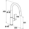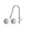 Einhebelmischer. Mit schwenk-/herausziehbarer Schlauchbrause (Strahl/Brause umstellbar), seitlichem Hebel, Laminarstrahlregler und Keramikkartusche.