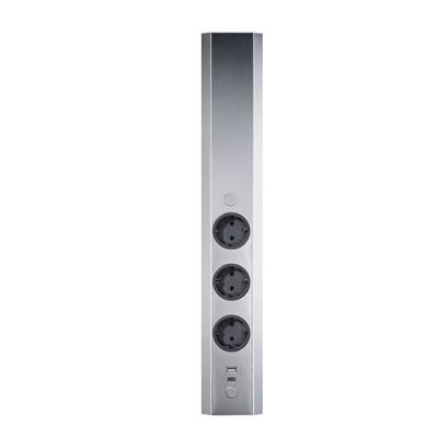 Für eine elegante und funktionale Küchenausstattung sorgt die kompakte Con-Aktiv® 3-Fach-Steckdose Mira Wand small USB A/C. Sie lässt sich an der Wand über der Arbeitsplatte montieren und füllt den Bereich zu den Oberschränken optimal aus. Dies gelingt durch das von 460 bis 580 mm teleskopierbare Ausgleichsstück. Das Steckdosenelement bietet ein flaches Metallgehäuse mit wählbaren Oberflächenveredelungen in einem seitlich abgeschrägten Design. Ausgestattet ist es mit drei übereinander angeordneten Schuko-Steckplätzen sowie je einem USB-Charger der Typen A und C. So können Smartphone und andere Mobilgeräte beim Kochen oder Backen einfach aufgeladen werden. Die Steckdosenleiste lässt sich an der Wand montieren und stellt einen Kabelauslass in der oberen Rückseite zur Verfügung. Eine 2.000 mm lange Netzanschlussleitung zum Direktanschluss ist vorhanden. Zudem liegt ein passender Schutzkontaktstecker für eine alternative Elektromontage der Mehrfachsteckdose bei.