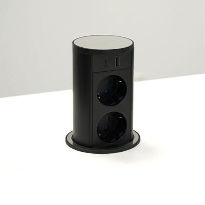 Steckdosenelement. Versenkbar. Mit 2 Steckdosen und USB A/C Charger für Hängeschränke oder Arbeitsplatten.