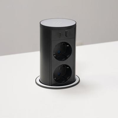 Steckdosenelement. Versenkbar. Mit 2 Steckdosen und USB A/C Charger für Hängeschränke oder Arbeitsplatten.