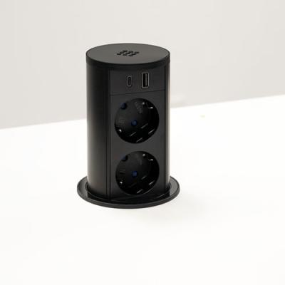 Steckdosenelement. Versenkbar. Mit 2 Steckdosen und USB A/C Charger und QI Ladefunktion für Hängeschränke oder Arbeitsplatten.