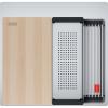 Die Box Pro Becken bieten eine funktionale und durchdachte Lösung für die Küche. Das im Lieferumfang enthaltene praktische Zubehörpaket mit Rollmatte, Schneidebrett und Abtropfbecken ermöglicht das Arbeiten auf drei verschiedenen Ebenen: Im Beckenboden kann Wasser angestaut, Obst und Gemüse gewaschen oder Geschirr gereinigt werden. Auf der Funktionsstufe im Becken bietet die hitzebeständige Rollmatte Platz für heiße Töpfe und Pfannen oder kann als Abtropffläche genutzt werden. Der Beckenrand dient als Ablage für das Schneidebrett und Abtropfbecken und sorgt für einen reibungslosen Ablauf bei der Lebensmittelzubereitung.