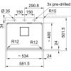 Mögliche Bohrungen für Armatur/Zubehör sind nur von unten angebohrt und müssen bauseits mit geeignetem Bohrer durchgebohrt werden. Bitte ggf. den Fragranitbohrer aus dem Sonderzubehör mitbestellen.