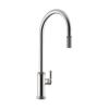 Einhebelmischer. Mit schwenk-/herausziehbarer Schlauchbrause aus Metall (Strahl/Brause umstellbar), seitlichem Hebel und Keramikkartusche.