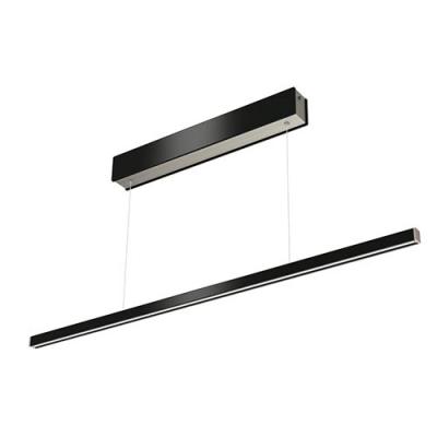 Pendelleuchte. Aluminiumgehäuse, edelstahlfarbig eloxiert, Abdeckung Acrylglas. Inkl. Konverter und Fernbedienung.