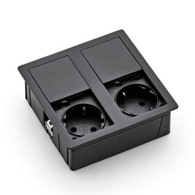 Steckdosenelement. 2-fach. Einbausteckdose mit Doppel-Schiebedeckel.