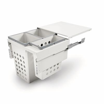 Ein praktisches Ordnungssystem für Schmutzwäsche bietet der Wäschekorb-Auszug Cox® Wash 580/600-3. Zur Ausstattung gehören drei Behälter mit einem großzügigen Gesamtvolumen von 91 Litern, die ein einfaches Sortieren und Verstauen der dreckigen Kleidungsstücke ermöglichen. Während die beiden größeren Wäschebehälter ein Fassungsvermögen von je 35 Litern haben, besitzt der kleinere Wäschekorb eine Größe von 21 Litern. Für eine optimale Luftzirkulation und Schutz vor muffigen Gerüchen sorgen die abgerundete Durchbrüche im Ausziehkorb. Durch den Überauszug ermöglicht er einen komfortablen Zugriff auf die schmutzige Wäsche. Der Softeinzug und die Dämpfung sind für einen leisen und selbstständigen Einzug verantwortlich. Durch den quick&easy-Montagerahmen ist der Auszug schnell und passgenau an der Schrankwand montiert. Sein schlichtes Gestell und die silberfarbene Führung lassen sich harmonisch in jeden Schrank integrieren.