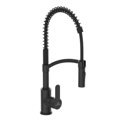 Die Küchenarmatur Ventari ist eine Armatur mit echter Profi-DNA. Inspiriert von der Gastronomie bietet sie alles, was ambitionierte Hobbyköche und Designliebhaber schätzen – maximale Bewegungsfreiheit, volle Kontrolle und ein markantes Design. Die stabile Spiralfeder und der hohe Auslauf sorgen für außergewöhnlichen Bedienradius. Die flexible Geschirrbrause mit zwei Strahlarten lässt sich einhändig führen und findet zuverlässig in ihre Ausgangsposition zurück – für flüssige Abläufe in jeder Situation.